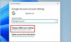 - Change mailbox sync settings by clicking on it.