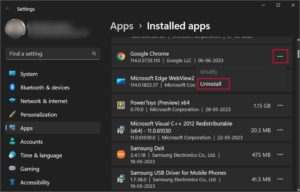 A third-party app can conflict with Windows and produce screen flickering issues. There is no easy way to find it but you can narrow it down to recent installations. Firstly, you must update all the Microsoft Store apps and third-party apps on your computer. It will take a while to check and download updates for each third-party app via in-app settings. If that doesn’t help, you must uninstall the conflicting app. Here’s how to do it:
